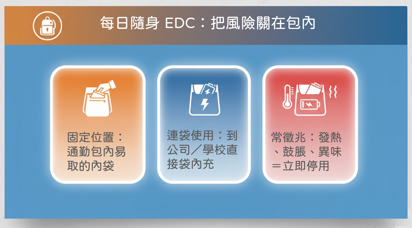 - 固定位置:通勤包內易取的內袋,避免與鑰匙、硬幣等金屬物共放。