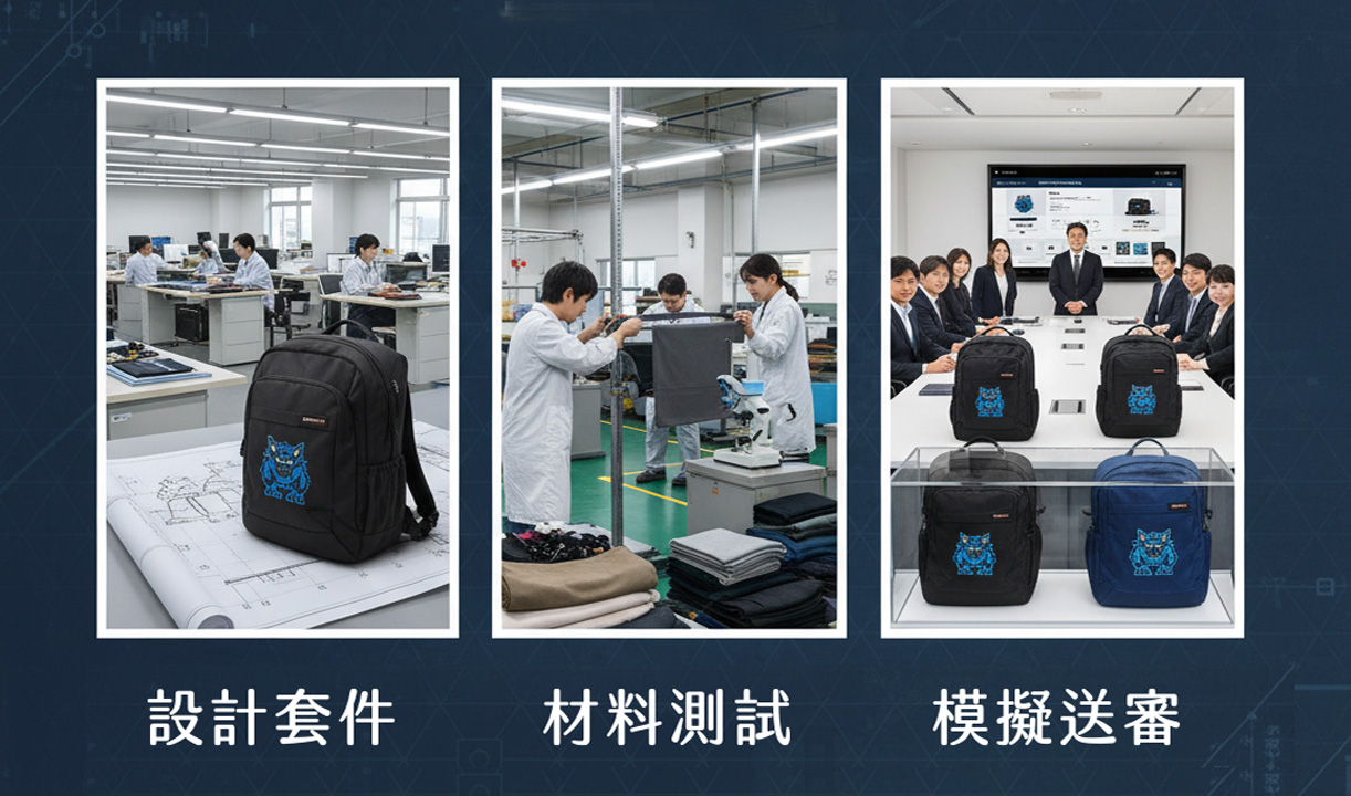 倍勁 baychin 客製背包觀點: 建立在「設計套件、材料測試、模擬送審」三模組流程之上。這套方法將常見規範事前模組化,大幅減少專案的不確定性。