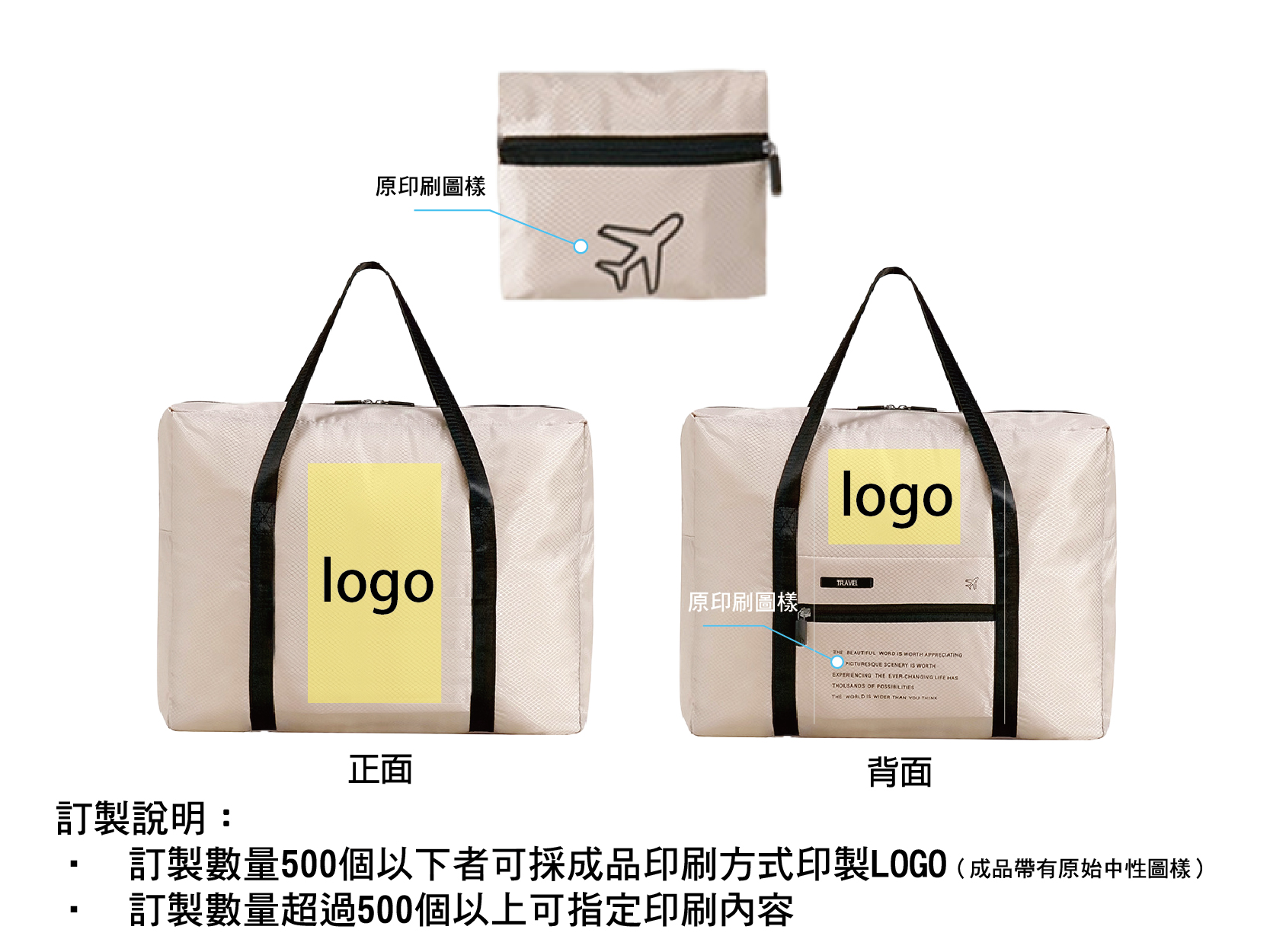 可折疊收納提袋材質輕盈、耐用,無論是購物使用還是旅行與運動收納都讓你的生活更加便利有序。可折疊樣式使用方便收納方便,舒適攜帶,附行李插帶與小收納袋,讓您的旅行更加便利整齊,是企業主、機關團體客製訂購的理想選擇。我們提供客製化 logo、顏色、包裝設計服務,適合企業贈品或活動福袋大量訂製。支援多種LOGO客製工藝,包括印刷、織標、夾標等,無論是企業贈品、活動宣傳或品牌推廣皆可量身訂做。